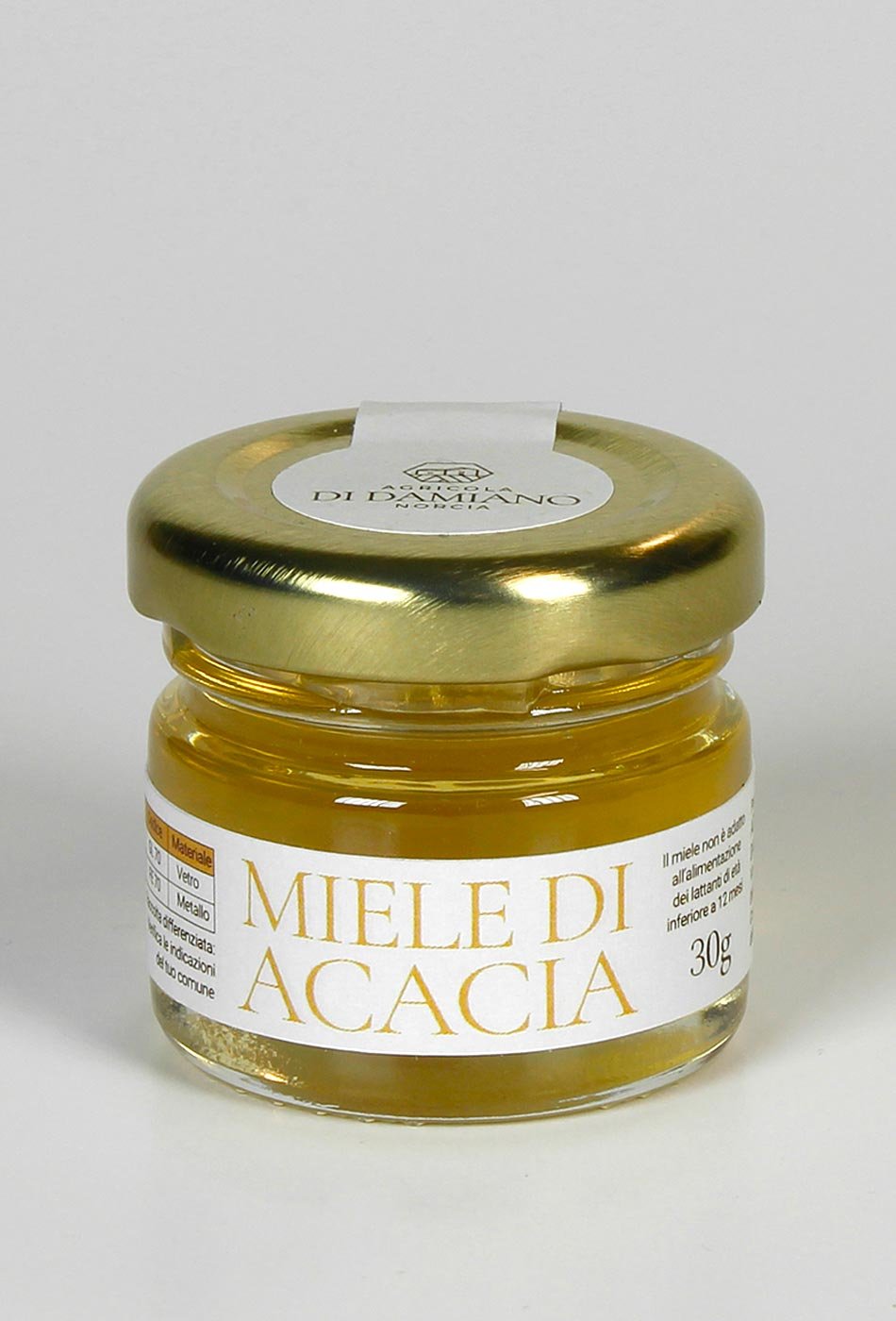 Miele di Acacia disponibile nei formati: 30g250g500g1kg