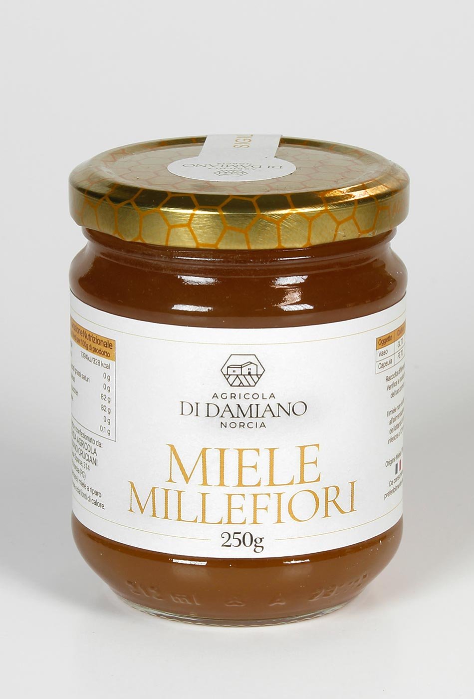 • Miele millefiori chiaro: di colore trasparente e luminoso, dal sapore delicato e dolce, meno intenso. Dopo alcuni mesi dalla produzione, tende a cristallizzare, ed è tipicamente raccolto da inizio primavera fino a giugno/luglio.